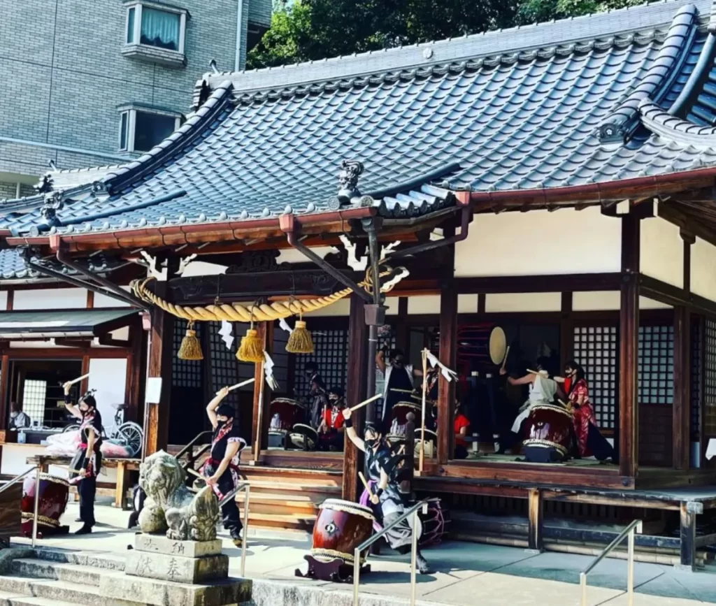 ステージで吹奏楽部が、本堂で和太鼓部がそれぞれのレパートリーを披露しました!