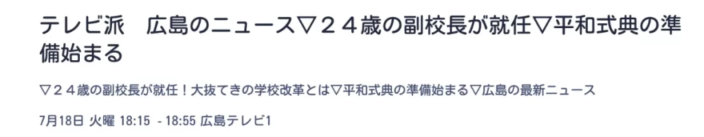 本日18:15より本校副校長桐原が広島テレビ「テレビ派」にて特集されます。
