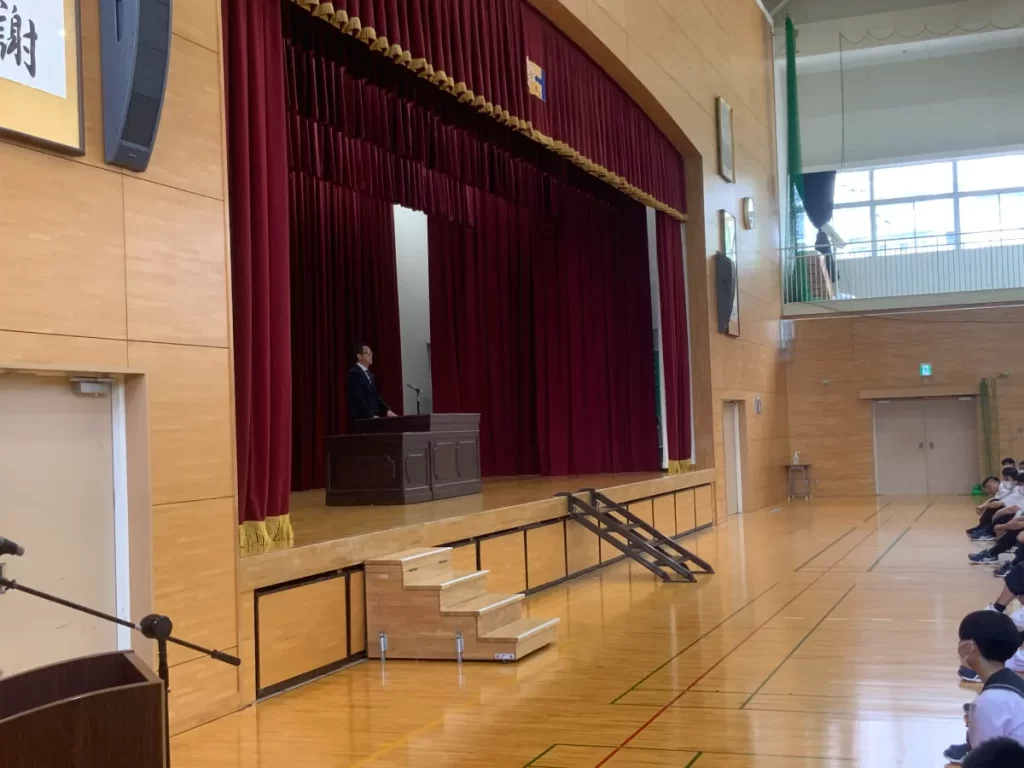2時間目に体育館に全校生徒が集まり、始業式を行いました。