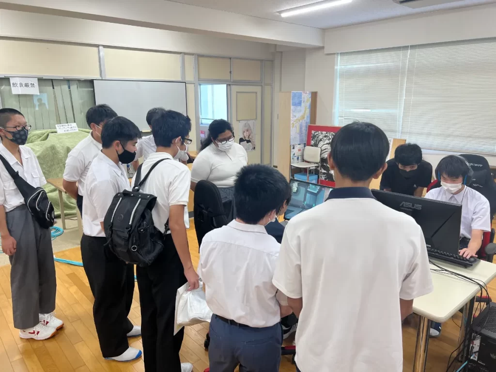 (元プロゲーマー吉川さんのプレイを見る中学生の様子)