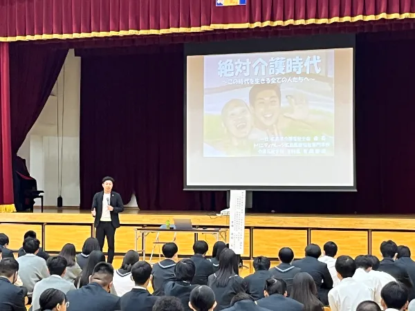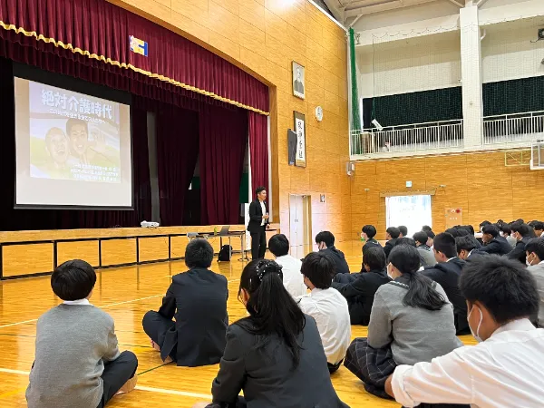 講演は吉岡さんが福祉の業界に入るきっかけや、介護福祉士として関わってきた方々との日々のお話をいただきました。お話に感動し泣く生徒も多数いました。