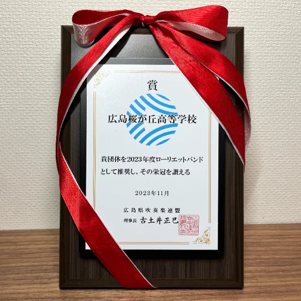 広島県吹奏楽連盟より2023年度ローリエットバンドに選出され、ローリエット賞を受賞しました!