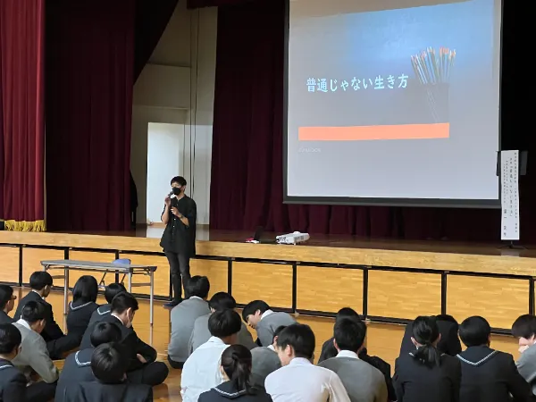 本日1学年対象に教育系YouTuber 葉一さんをお呼びし、キャリア講演会を行いました。