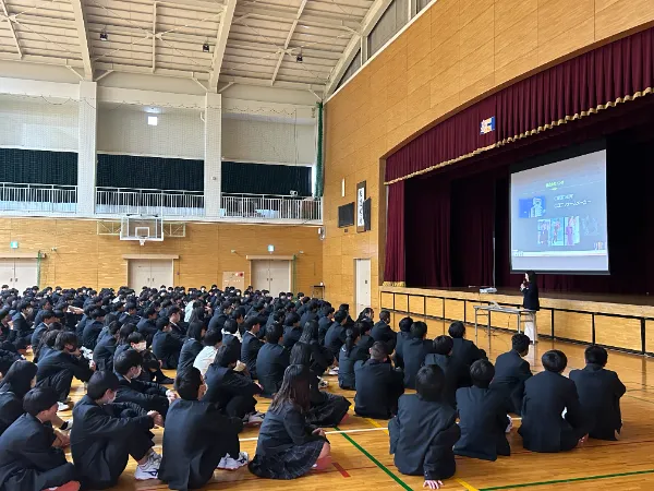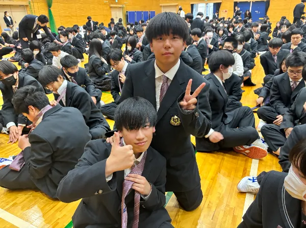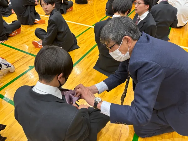 トンボ学生服さんに正しい制服の着こなし方を教わり、男子生徒はネクタイの結び方もレクチャーをうけました。
