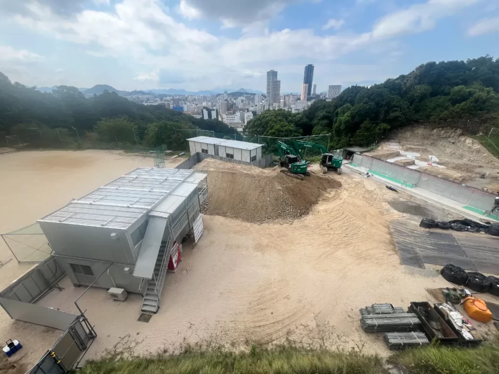 南校舎からは新校舎が出来上がっていく様子を見ることができます。