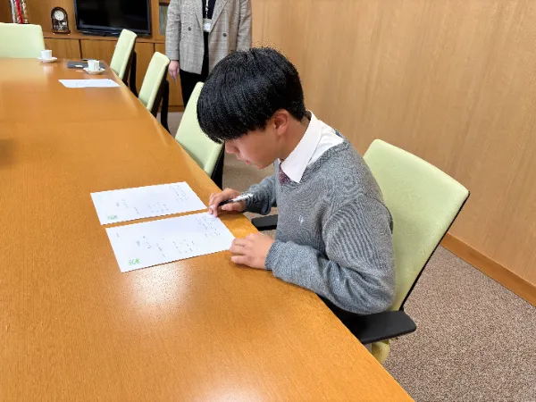 実際に出資企業の社長と最終面談を行い”借用証書”を交わすという徹底ぶりに、生徒たちもやや緊張気味…とても貴重な体験をすることができました!