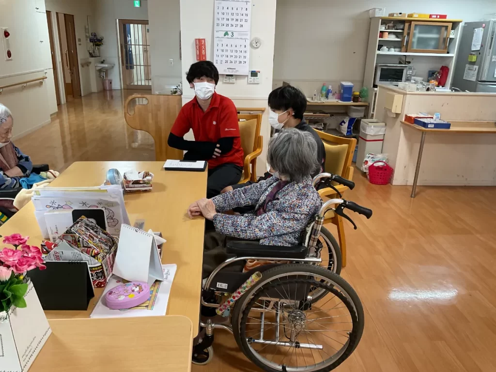 介護士さんと利用者さんとの談笑の様子