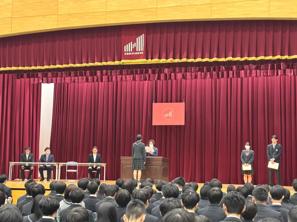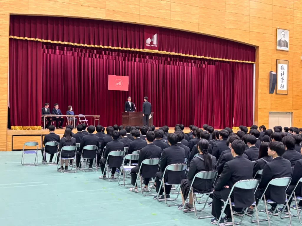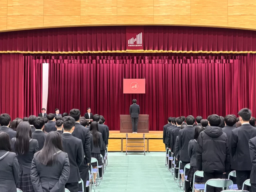 卒業式を目前に控え、本日3年生が褒賞授与式および同窓会入会式を行いました。