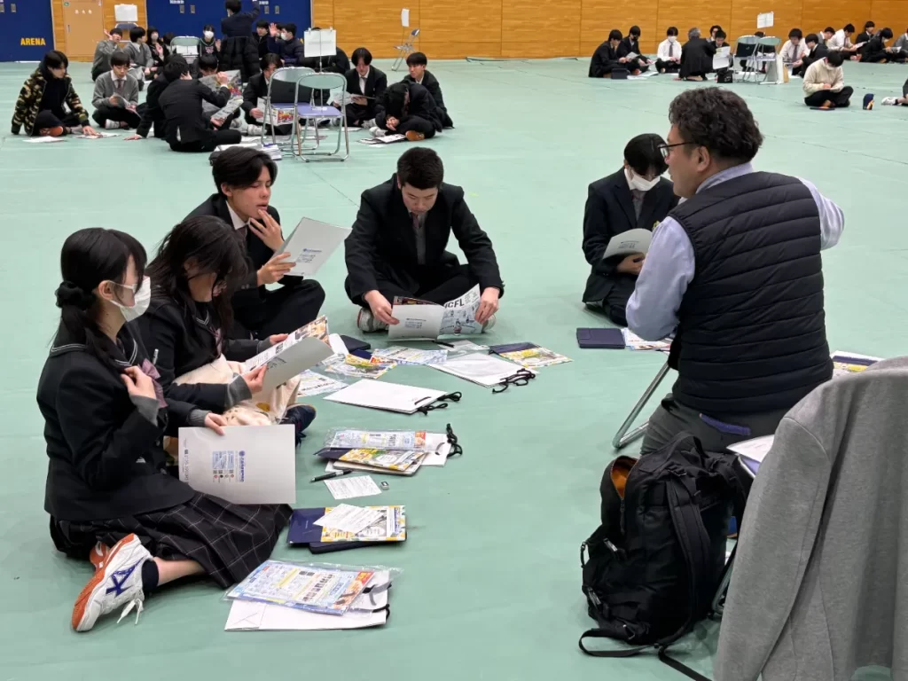 40の広島県内の大学、専門学校、企業の方々をお招きして、進路に関する情報を共有していただきました。