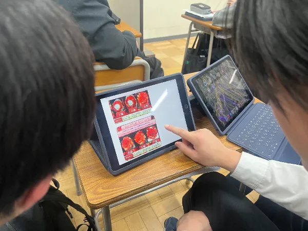 探究の時間を利用して事前のリサーチが行われ、綿密な話し合いが行われたり、お互い意見を出し合ったりしている姿が印象的でした。