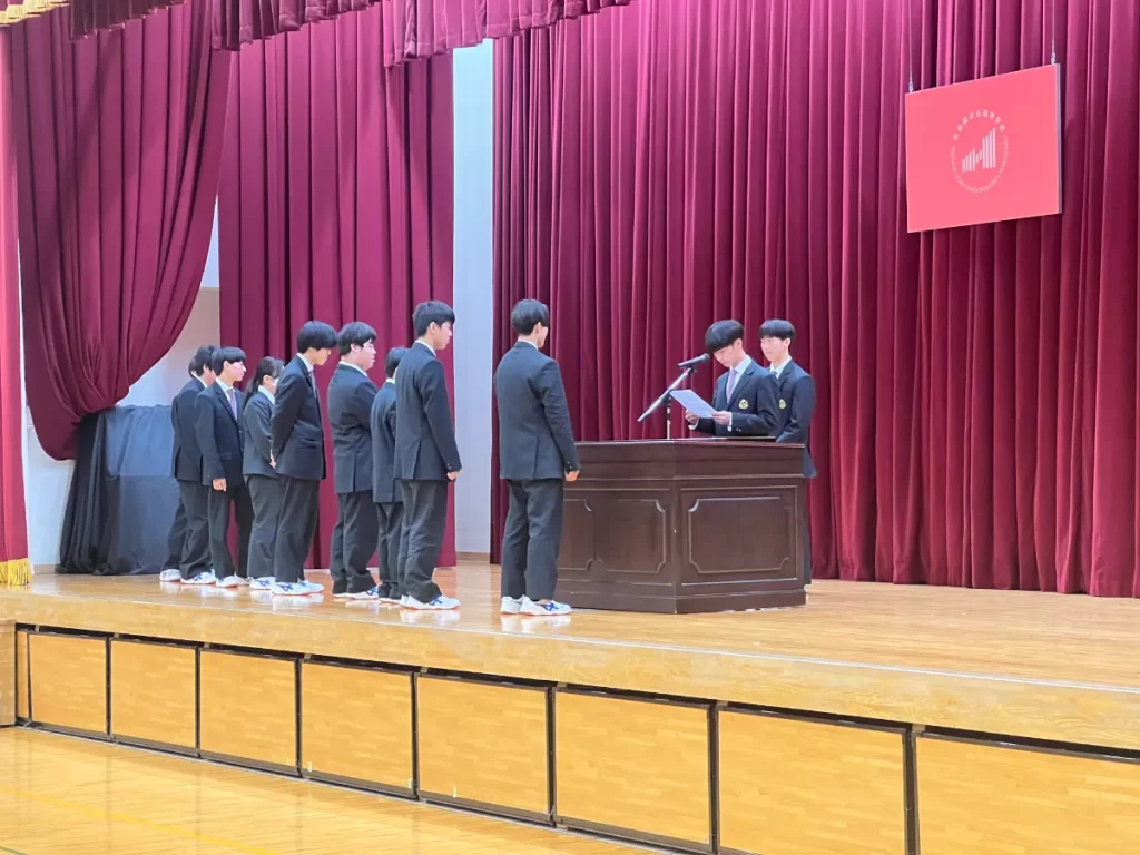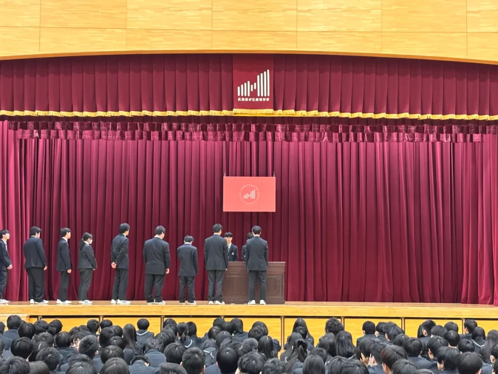 本日、令和6年度の修了式が行われました。1年間の締めくくりとなるこの日、全校生徒が体育館に集まり、校長先生からの話に耳を傾けました。