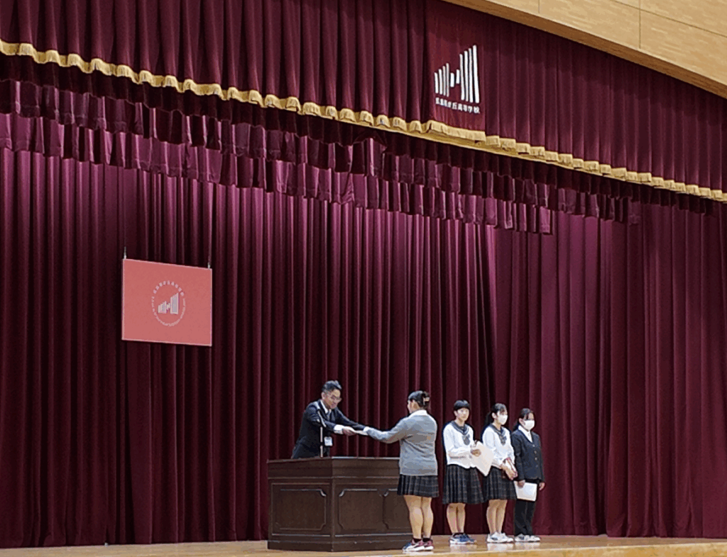 式では、夏休み中に部活動や資格取得で成果を上げた生徒たちの表彰が行われ、
