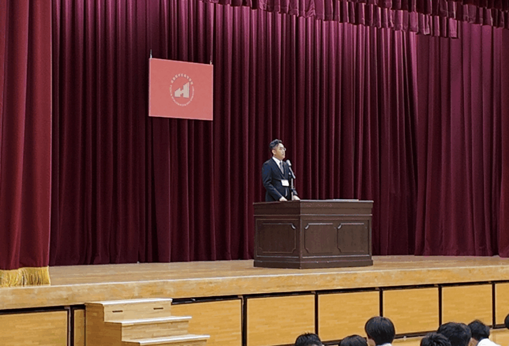 続いて、校長先生からのお話に生徒たちは真剣な表情で耳を傾けていました。