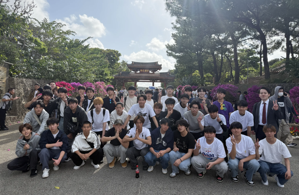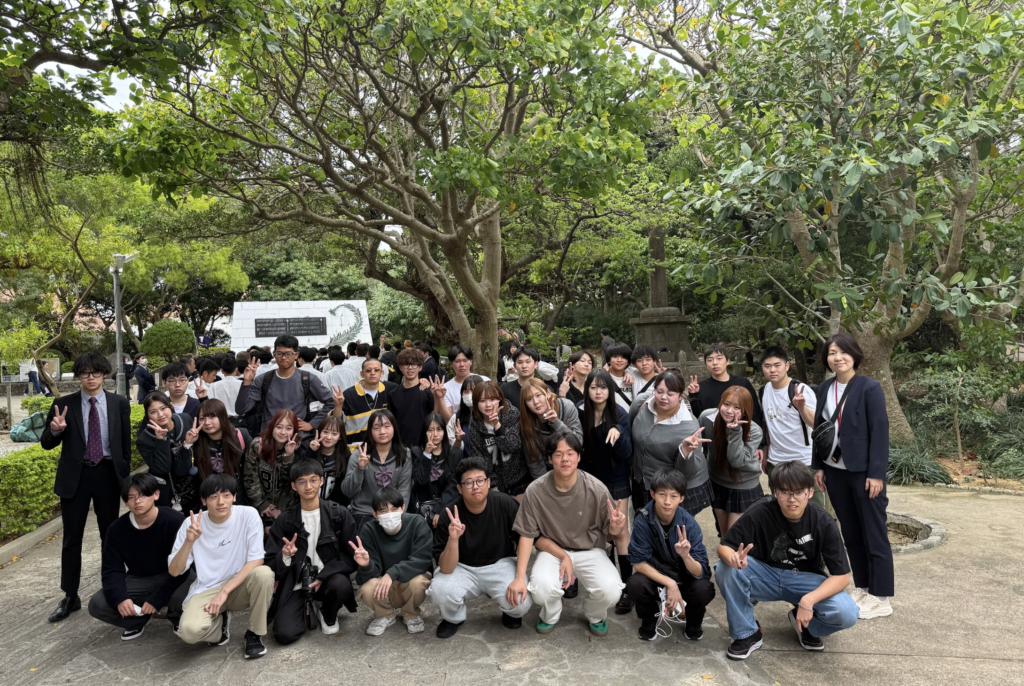 まずは首里城公園へ。 世界遺産に登録されながらも火災を経験し、現在も懸命に復旧が進められている首里城。 その復旧工程や建築構成を見学しながら、琉球王国時代の歴史に触れました📕 「いつかまた完全な姿を見たい」と話す生徒の声が印象的でした。