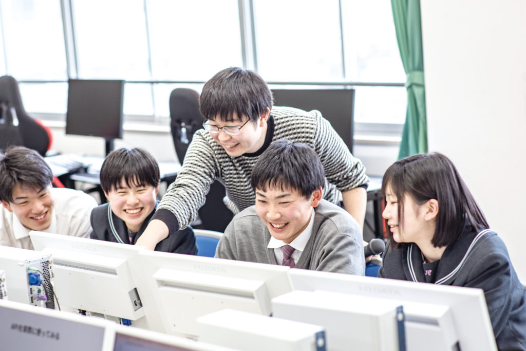 探究の授業ではどんな自分になりたいか?を考え、未来の自分をデザインします。2年次からは、4つのコースに分かれ、夢の実現を目指します。