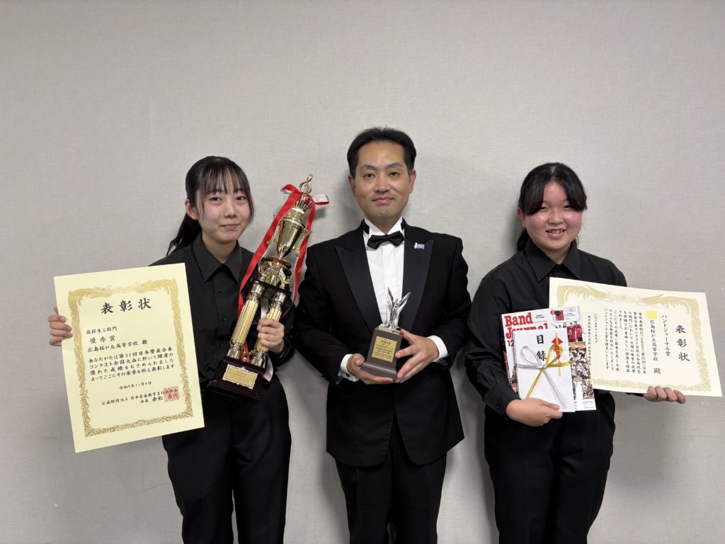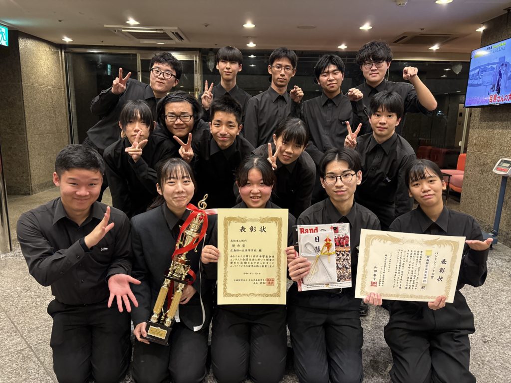 全国の舞台という緊張感の中、全員が心を一つにして演奏を披露し、優秀賞、指揮者賞を受賞、さらに演奏の音楽性や表現力が評価され、バンドジャーナル賞という特別賞もあわせて受賞しました!